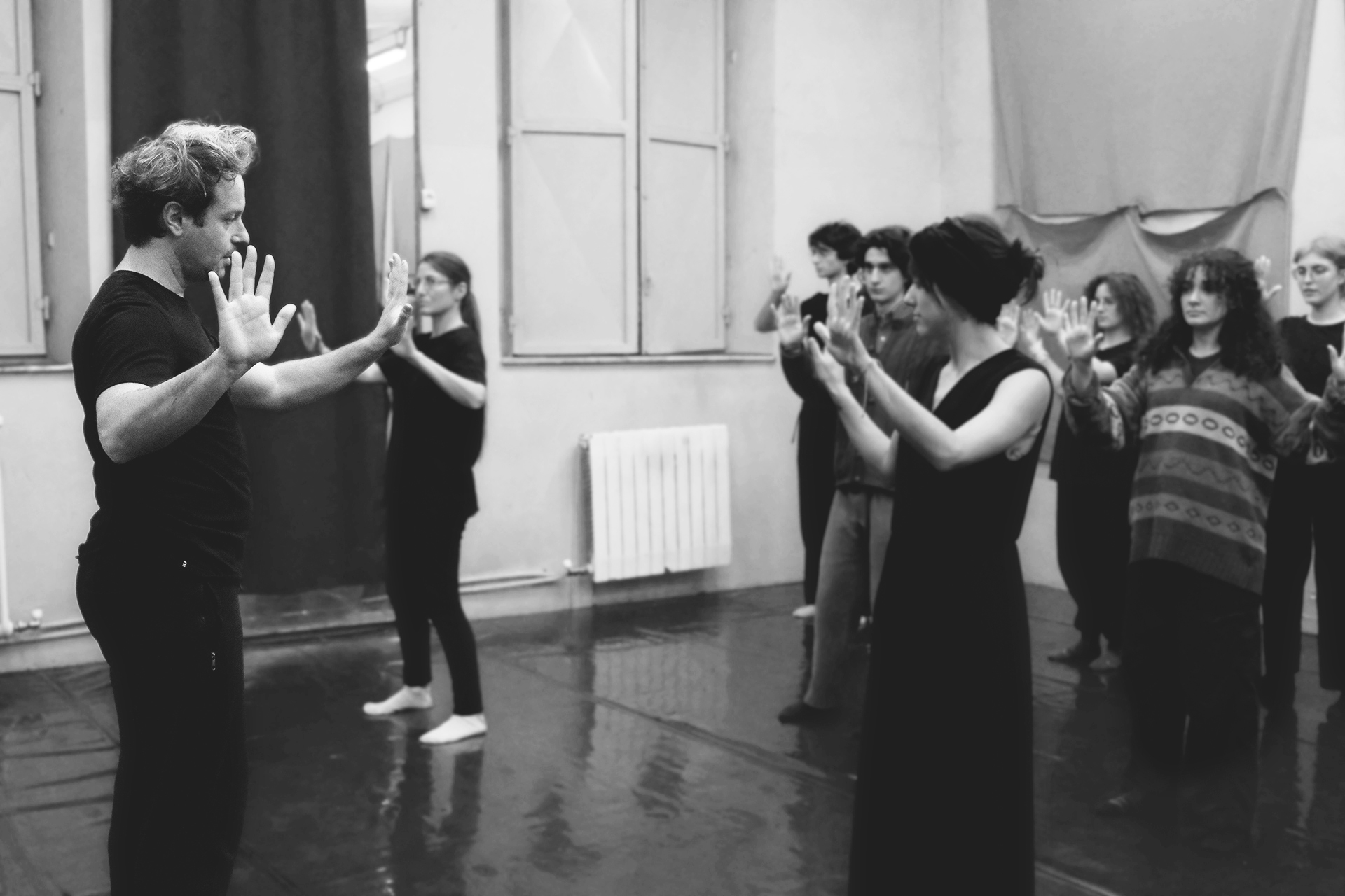 Attraverso il teatro fisico l’attore acquisisce la capacità di esprimersi in tutti i linguaggi teatrali, attraverso lo studio delle dinamiche universali di comunicazione.