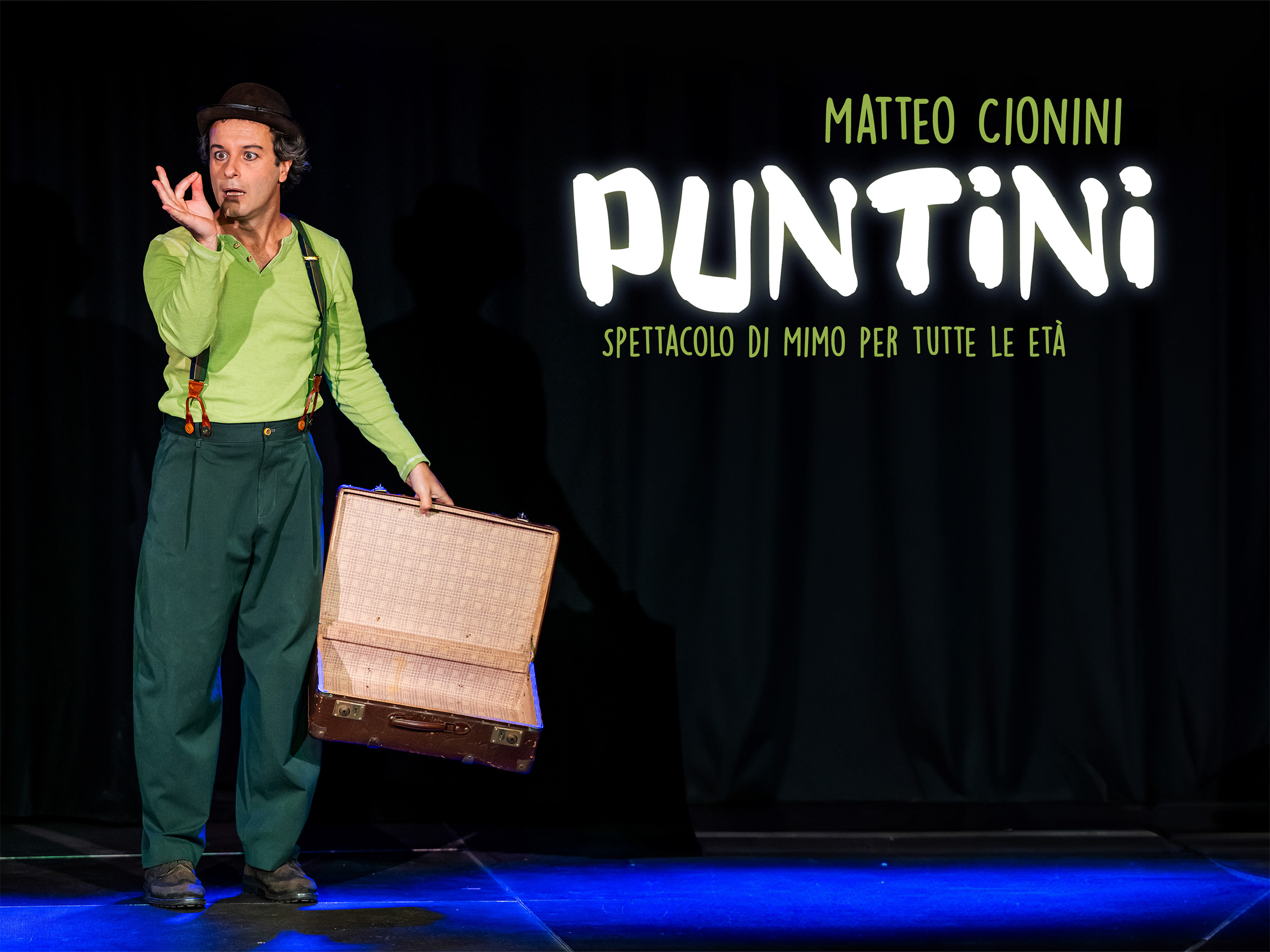 PUNTiNi è uno spettacolo di Mimo per il Teatro Ragazzi, per bambine e bambini di tutte le età.